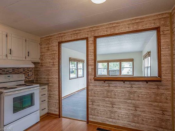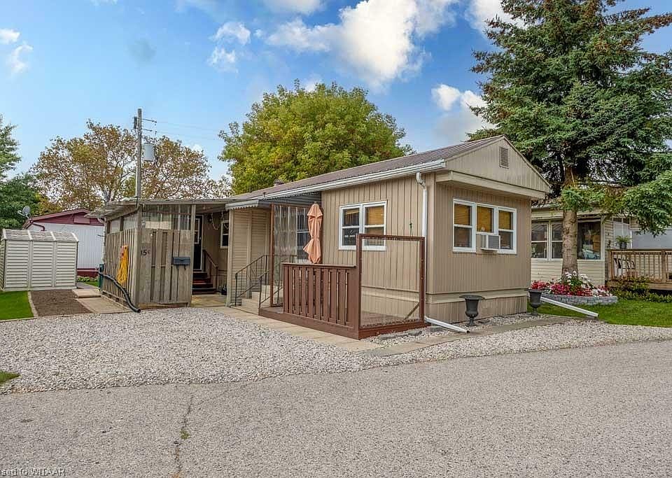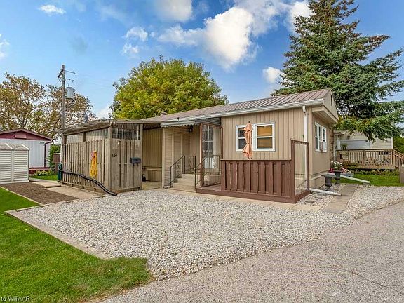 This bright and well maintained 2 bedroom mobile home just may be your affordable opportunity to get into the real estate market. Just outside the front door you could be enjoying your morning coffee on the small but quaint deck or during the cooler weather you could choose to take advantage of the 12x14 covered and partially enclosed beautiful patio. Coming off the patio you can enter through the newly added mud room and through to the laundry area and primary bedroom. The large bathroom has a full size walk in bath tub and shower making accessibility a breeze. A newly painted and spacious eat in kitchen opens up to a bright living room complete with newer vinyl plank flooring. The small but private yard space has room for a garden and the large 7X10 shed can store all your gardening tools and then some! This quiet and friendly park couldn't get any closer to the towns beautiful walking trail plus it's close to lots of amenities like restaurants and grocery stores and it's just minutes to the downtown core. With the steel roof, new siding (2019), and newly painted and spruced up interior there isn't much more to do but move in. The biggest bonus of all though is the incredibly low park fees which include property taxes.......just $298.24 per month! Don't delay as deals like this don't come by every day!