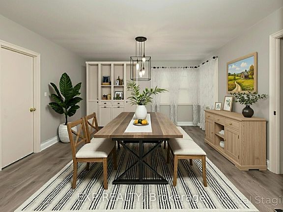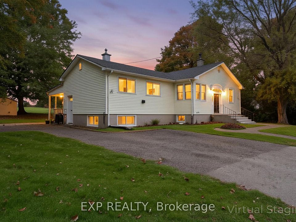 Possible Investment Opportunity!! This well-maintained home offers a recently renovated kitchen with built-in microwave, natural gas stove, fridge, stainless steel dishwasher, stylish backsplash, and newer bamboo flooring in the kitchen and two bedrooms. A spacious eating area with corner windows brings in plenty of natural light, and a large 4-piece bathroom adds to the comfort of the main level. The lower level, accessible by two staircases, features a rec room with bar area, a free-standing natural gas fireplace, a 2-piece bath with laundry combo, and an unfinished area - ideal for storage or workshop use. Mechanical highlights include a sump pump with backup battery, natural gas furnace with central air, and central vacuum system. Outside, enjoy a double-wide laneway with parking for four, a covered back porch/patio, fire-pit, two storage sheds, a gas line to the barbecue, and a spacious, treed yard with a clear view. With very large frontage on over 1/2 acres town lot, this property may offer severance potential for a future building lot or space for a personal shop-endless possibilities await! Located in the quiet village of Vienna, Ontario, you'll appreciate the peaceful small-town lifestyle, nearby nature trails, and easy access to Lake Erie-perfect for those seeking a relaxed, rural setting with community charm.