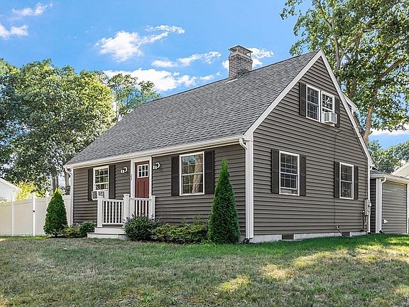First showings at open house Sunday. This 3 bedroom 2 bath cape layout is perfect for both starting out or downsizing. Step into your good sized tiled floor mud room before entering into a recently renovated kitchen w/custom cabinets, quartz counters and S/S appliances. An open concept dining room & living room with hardwood floors and fireplace. A first floor bedroom, full bath and laundry room make this perfect for one floor living. The second floor has 2 front to back bedrooms and another full bath. Your finished basement has two finished rooms and additional workshop/utility room. The roof, septic, windows, siding & wiring have all been done in the last 4 years. All of this located on a corner fenced in lot minutes from the commuter rail and major highways. You can't get much better than this for move in ready! A Wonderful home for these sellers for 3 short years. However, a job transfer now necessitates it's sale.