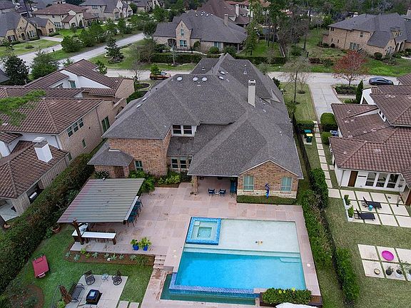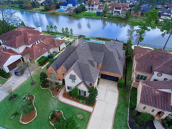 Stunning four bedroom waterfront home located in Creekside Park on Lake Paloma! Dramatic water views greet you upon your entry along with the spiral wrought-iron staircase, high ceilings, large formal dining room, and french door study. Gorgeous hardwood flooring throughout the downstairs areas, a large island kitchen w/granite counters, breakfast bar, stainless steel appliances, double ovens and wine cooler plus a breakfast area with built-in seating under the large picture window overlooking the water. A 2nd private staircase provides access to garage and mud room area. Other amenities include Plantation shutters, large stone fireplace, and a vaulted ceiling on first and 2nd floor. Master bedroom and guest suite down plus two bedrooms, fully equipped media room, and game room up. The back yard oasis w/covered patio, summer kitchen w/lg dining island and 2nd entertainment area surrounds the firepit! True three garages w/the single garage having its own independent HVAC unit.