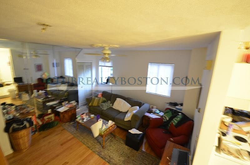 Holy Moly! All the bells and whistles! Large sunken living room, FREE OFF STREET PARKING FOR 2 CARS! Heat and hot water included! Dishwasher, ceilings fans. Loft style with bedroom upstairs. MBTA 57 bus! Great price! Heat and Hot Water Included