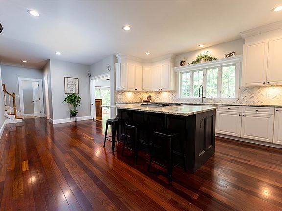 IMPROVED PRICE! This gorgeous oversized modern cape exudes pride of ownership throughout and offers 4 bedrooms and 5 bathrooms in the main living area. The sun filled kitchen has been recently updated with newer kitchen appliances, large island and leathered granite counters. The first floor open concept floor plan is the perfect entertaining space and boasts cathedral ceiling, wood floors, exquisite trim and crown molding, and updates throughout. The master suite features cathedral ceilings, an oversized walk in closet and additional closet space, a remodeled master spa bath, and exit to a private hot tub oasis. A second floor ensuite bedroom offers flexibility to become an additional master bedroom, teen suite, or guest room. Two additional bedrooms on the second floor are perfect for your growing or extended family. A few steps from the stone tiled shiplap mudroom brings you down to a hidden wine room, office, gym space, full bar room with adjacent game or recreation space in t