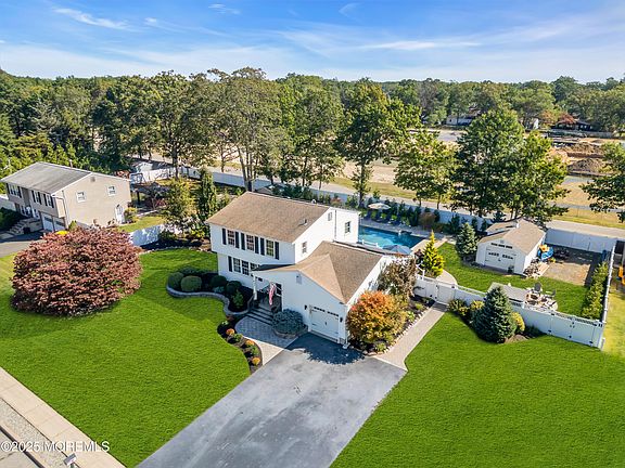 Welcome to this gorgeous 4-bedroom, 2.5-bath colonial tucked away in one of Bayville's most beautiful developments! You'll love the peaceful neighborhood feel, complete with sidewalks for evening strolls and underground utilities that keep the streets looking neat and clean. Step inside to a bright and spacious layout featuring a living room, dining room, kitchen, and a cozy den right off the kitchen—perfect for family time or entertaining friends. There's also a separate laundry room for convenience and an unfinished basement that offers plenty of storage or space to grow. Outside is where this home truly shines—your private backyard oasis! Enjoy your own heated saltwater in-ground pool (only two years old!), a relaxing hot tub, and a beautiful Trex deck overlooking the fully fenced yard an ideal setup for backyard fun, summer barbecues, and peaceful evenings under the stars. Recent updates include a new hot water heater, newer roof, and a handy storage shed. Plus, you're just minutes from shopping, restaurants, and easy access to the Garden State Parkway. This home has everything a family needscomfort, style, and a backyard oasis made for making memories. Don't miss the chance to make it yours! Bonus- ** Well for sprinkler & pool**