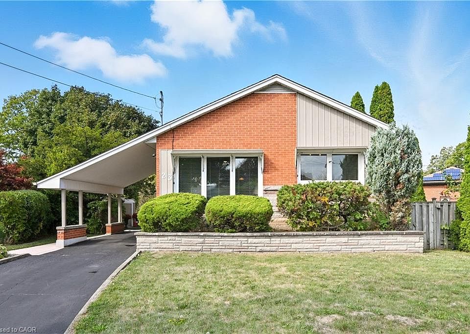 Welcome to 23 Percy Court — this solid brick bungalow is nestled in a highly desirable neighbourhood on a quiet, family-friendly court. Sitting on a large, private pie-shaped lot with a 150-ft depth and mature cedar trees, it offers exceptional year-round privacy. The main floor features an open-concept layout with three bedrooms and a newly renovated 3-piece bathroom. Updates include modern light fixtures, fresh paint, and beautiful hardwood flooring, giving the home a warm and inviting feel throughout. The lower level offers a separate area for entertaining, along with an additional bedroom and bathroom, providing great flexibility for guests or extended family. Outside, enjoy a new concrete patio, perfect for relaxing or entertaining friends and family. Lovingly cared for, this home shows true pride of ownership. Conveniently located close to schools, parks, shops, and recreation centres, it combines privacy, comfort, and convenience in one ideal package.