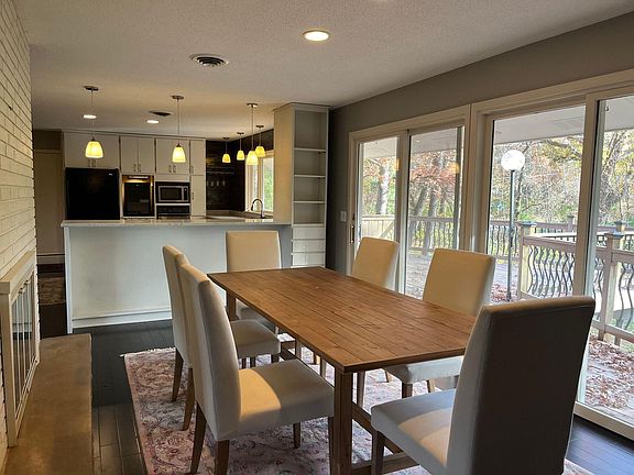 Discover this stunning mid-century modern walk-out rambler, updated for today’s living while preserving its timeless charm. Boasting a sprawling open main floor, the home features a large center island kitchen with a breakfast bar—perfect for gatherings and entertaining. The owner’s suite is a true retreat, offering a private office, luxurious double vanity en-suite bath, and an enormous walk-in closet. The expansive lower-level family and amusement rooms come with brand-new carpet, offering ample space for relaxation or play. Massive windows throughout the home flood the space with natural light and offer panoramic views of the private wetland and wooded surroundings. Located just steps from tennis, basketball, and pickleball courts, near Pleasant Lake access, and surrounded by miles of groomed neighborhood trails, this home is an outdoor enthusiast's dream. Situated in the award-winning Mounds View School District.