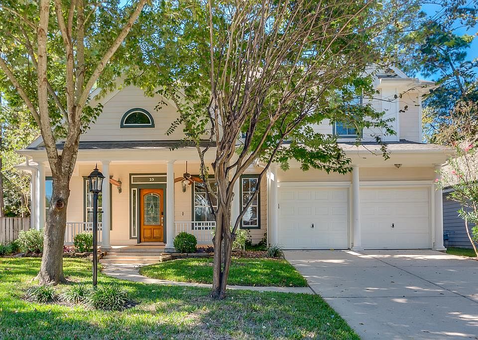 HIGH & DRY! Morrison home w/timeless craftsman features! Situated in picturesque Cottage Green neighborhood w/iconic front porch; hardwood floors throughout; encased openings; transom wdws; granite kit w/stainless appliances, walnut island; open kit/den w/cathedral ceiling; secluded MBR suite down w/granite bath; screened-in patio for year-round living (mosquito-free) + stone patio! Epoxy floor in garage, built-ins throughout, neighborhood park! Walk to top-ranked Bush Elementary, shops & MORE!