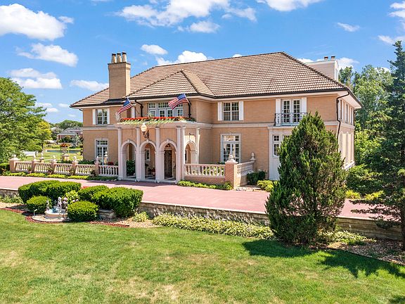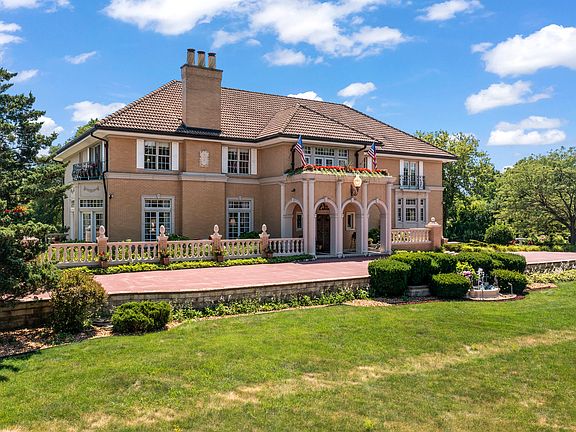 [DUE TO SPACE LIMITATIONS IN THIS SECTION, SERIOUS REAL ESTATE PROFESSIONALS AND PURCHASERS SHOULD PLEASE READ THE ATTACHED "WALK-THROUGH NARRATIVE" FOUND IN THE DOCUMENTS SECTION.] North Shore elegance in So. Barrington. Original owner-builder offering timeless, exemplary, architecturally disciplined mansion. PERFECT FOR MULTI-GENERATION EXTENDED FAMILIES. DESIGNED FOR EACH GENERATION'S REQUIREMENTS AND PRIVACY. Immaculate, non-smoking, pet & child free, 19 room, approx. 11,000 square foot, Italian Riviera Waterfront Villa: nearly 2 acres. Showcase lot with 477 feet of frontage, the most frontage in the entire HR subdivision. Approx. 10,000 sq.ft. completely BRAND NEW HORSESHOE SHAPED DRIVE (August-2024) with Merrimac Gold Stone edging throughout with dual lane capability at front door and side wing garage entrance driveway. MASSIVE dual East and West ornately gilded rose pattern bronze and gold tone gates, with it's own large private beach in exclusive 35 home Hunter's Ridge. Concrete barrel tile roof w/protective sculptured copper edging, oversize copper gutters, copper downspouts w/decorative brackets, & fleur-de-lis pattern scuppers. Unique & ornate dual 10 panel bronze entry doors with architectural artifact terra cotta entryway. 21' high Foyer, cherry & bronze leaf staircase, formal Dining Room with it's 4 foot diameter plaster dome center ceiling to accommodate a 5 foot antique, bronze & crystal chandelier; this regal room comfortably seats 14 people. Extremely rare, 4 STOP CENTRALLY LOCATED ELEGANTCHERRY WOOD & BRONZE MIRRORED ELEVATOR, DISABILITY ACCESS, 4 wood burning/gas fireplaces plus 2 (ornamental) fireplaces each with 5 exemplary, classical eclectic mantle surrounds (as reflected in the photos) , 6/7 Bedrooms, 2 Kitchens, Master Bedrooms on levels 1 & 2, 6 Full Baths (3 with whirlpools) + 2 Half-Baths located on main level, 4.5 car finished, heated garage with epoxy flooring and His & Her limousine spaces and with interior hot/cold water access. New 4th level Apartment, 4 walkout balconies, plus one ornamental balcony, 2 lighted recirculating fountains. Newer (May, 2021) 5 TRANE HVAC units with 10 year transferable parts limited warranty by TRANE and lifetime limited warranty on primary and secondary heat exchangers by TRANE. Also, newer (May, 2021) APRILAIRE advanced fan powered whole house humidifiers. Newer, 7 APRILAIRE WIFI remote controlled thermostats. NORSTAR commercial telephone system with 6 line capability and 16 multiline telephone extensions with whole house and individual extension intercom capability. Contains 4 sump pumps. Award winning Barrington District 220 named "Best Unit School District in IL" by NICHE 2025 BEST SCHOOLS. TO VIEW THIS AWARD CERTIFICATE please view photo in "additional documents attachments" or last picture #191 .