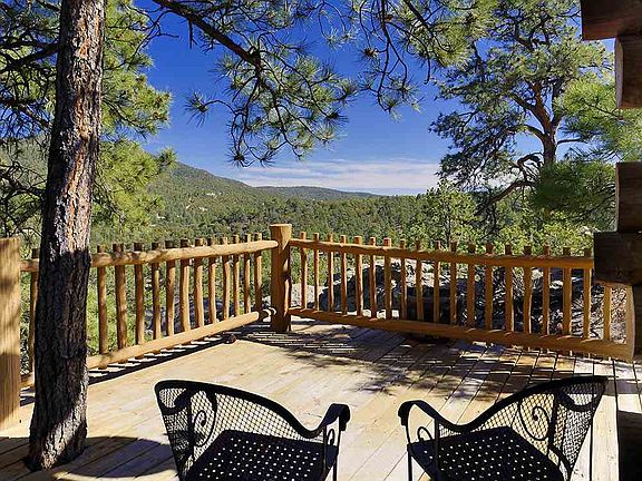An Eastside custom built Michigan Red Pine log cabin on a lofty slope facing Atalaya Mtn is simply a rarity that never shows up...Except Now! For all those who have dreamed of a cabin in the woods, this is your moment to shine. On a 5 acre parcel up with the Ponderosas & boulders, this richly appointed 2BR 2 Bath cabin (with two large sleeping lofts) has a story to share of sustainability, closeness to nature, privacy and spirit. Hiking corridors to St John's, to Sun & Moon Mtns , to Picacho Peak and the SF National Forest are at your doorstep. The 1700 interior sq feet are comfortably laid out, energy efficient, and offer comforting retreat for outdoor enthusiasts seeking simplicity, hand-hewn craftsmanship and mountain landscape. The interior flooring is wide planked Georgia pine.This home is romance of a different kind, come and experience it for yourself...it is a special cabin with no comparison.