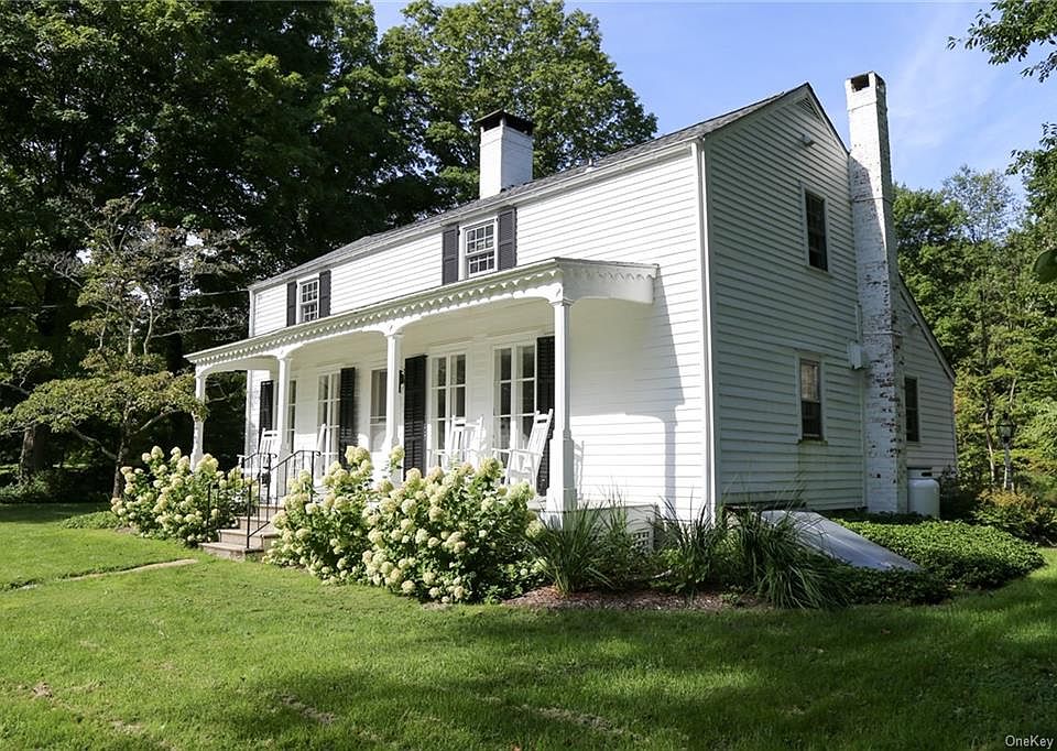 The Partridge Thatcher Historic Landmark in Pound Ridge was built in 1788 and features a charming Rocking Chair front porch. Own a piece of history. Major restorations and renovations in 2016-2019. Fully gutted and renovated kitchen featuring soapstone countertops and custom soapstone sink with Waterworks fixtures and new flooring. Dining room and Living rooms have fireplaces. First-floor bedroom and bath. New flagstone patio. 1 Car Detached Garage with Attached Workshop. Second-floor laundry in newly renovated full bath plus 2 bedrooms and hall office.