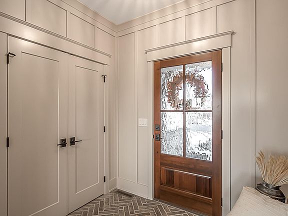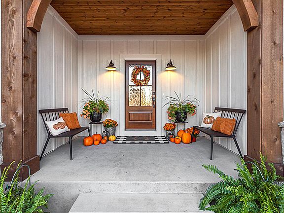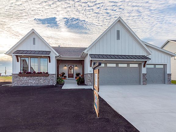 Stunning new construction that was recently awarded the Minnesota River Builder's Association Fall Tour of Homes People's Choice Award! Located in one of Mankato's premier subdivisions, this cottage-inspired home welcomes you with its warm, character-filled palette, quality craftsmanship and artisanal touches throughout. It sits on a nicely sized lot that backs up to green space and offers convenient access to the community park. The exterior of the home will charm you with its board and batten siding accented with metal roofing, country rubble stone, and cedar columns and brackets, as well as a nearly 11-ft long cedar flower box! The front porch is protected from the elements and features a stained wood ceiling. There is also a 10' x 20' covered rear porch, also with a stained wood ceiling and dual ceiling fans. A beautiful real wood front door leads you into a welcoming foyer with board and batten paneling and a herringbone brick floor. From there you will step into an open concept great room featuring a cozy family gathering space complete with an oversized fireplace, built-in cabinetry, and a coffered ceiling with reclaimed wood beams. The adjacent kitchen and dining room feature custom cabinetry and millwork, a premium appliance package, and beautiful quartz countertops. A large walk-in pantry and conveniently located pocket office offer ample storage space and wonderful functionality for a busy family. The master suite boasts large windows, a coffered ceiling with painted shiplap, and a spa-like master bathroom that includes heated tile floors, his-and-hers vanities with toe-kick lighting, a luxurious soaking tub, walk-in shower with dual shower heads, and built-in linen cabinetry. On the opposite side of the home, you will find two more spacious bedrooms, both with large walk-in closets, and a great secondary bath with a double vanity, shiplap accent walls and beautiful tile, including a fun wall niche. Completing the main floor, you will find a mudroom and a laundry room featuring patterned porcelain flooring, a built-in bench with cubbies, and additional closet space. Moving downstairs, a full unfinished basement with 9-foot ceilings offers the potential to nearly double your living space. It has already been framed to include a huge rec room, a game room, a bar, a flex room under the stairs, 2 bedrooms, a bathroom, and a mechanical room with storage. In addition to the framing, all mechanical, plumbing and electric rough-ins have already been completed--all it needs are your finishing selections to create a one-of-kind family entertainment zone! This home is proudly presented by PhillipsBuilt Custom Homes. Call today to schedule a private tour!