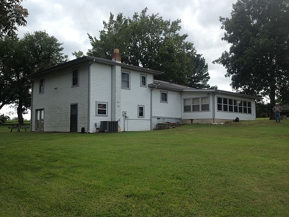 Beautifully maintained farmette with all you could ask for. Large home, shop building, barn, pond stocked with fish, garden spot, large pecan trees shading the yard. Just off the highway. Hardwood thru most of home with tile in rest. Large sunroom on back for those big gatherings, nice country kitchen with lots of cabinets, pantry, 2 utility rooms, mechanical room, patio off den. Set up for horses or a few calves. Feed room and barn. Nice level land with vista views. Wood furnace & central heat/air.