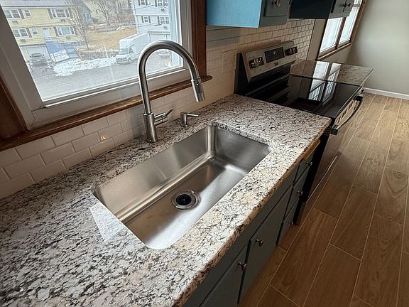 There is also a new subway tile backsplash, granite counters, a stunning tile floor, and a laundry closet.