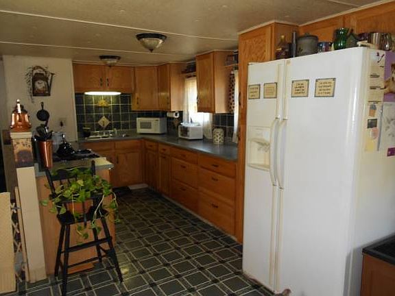 This mobile home sits on .62 acres and has 1 bedroom, 1 bath with a den for extra space. Eat in kitchen, city water, some updated features, Garage is detached and has a large family room and work shop area in it with storage above as well. This mobile also has a nice car port to park under to unload groceries from bad weather. This sale has to go cash due to age of mobile. Location is within walking distance to all town amenities. Property being sold as is and needs a new leach field. Shown by