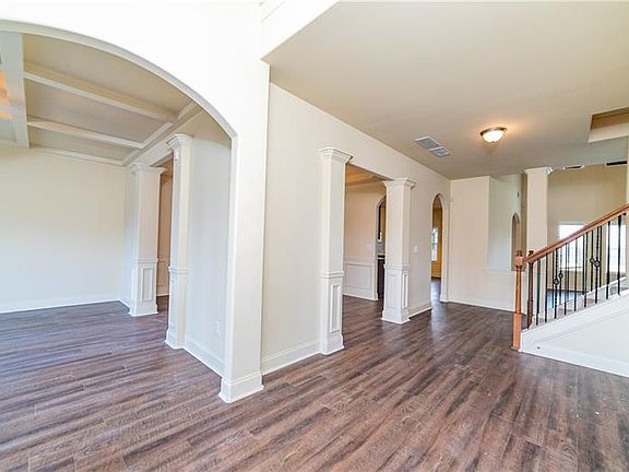 This stunning 6 bedroom, 5.5 bath home is located in prestigious Riverside Estates subdivision. Formal Dining Room, Flex Room, plus breathtaking 2 story living room featuring built-in bookcases, a fireplace, bar closet & tons of natural light! Kitchen is every chef’s dream - featuring granite countertops, tile backsplash, large island & pantry. Laundry room conveniently located on the 2nd floor! The incredible owner's suite is also located on the 2nd floor, complete with a sitting room, soaking tub, separate tiled walk-in shower, double vanities along with an enormous his & her walk-in closet. On the top floor, a giant bonus space is complete with full kitchenette & designated area for a pool table - perfect for game day entertainment! Outside, the privacy fenced-in backyard is large and level! Covered patio great for grilling or entertaining. Attached 3 car garage. Riverside Estates offers a community pool, playground, tennis courts & sidewalks! This stunning 6 bedroom, 5.5 bath home is located in prestigious Riverside Estates subdivision.