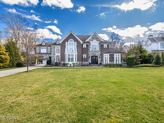 Located in one of Rumson's most sought-after neighborhoods, this timeless home was crafted by premier custom builder Merrick Construction. Quality exudes w/ extraordinary materials incl real stone, cedar shake, Andersen custom series windows, & mature landscaping. The porte-cochere w/ stone arches blends beautifully w/ a gorgeous, bluestone patio w/ huge stone FP & bar, perfect for entertaining. Open flr plan & two-story dramatic GR (w/22ft ceilings) link DR, library & light filled kit w/ door to outside patio. Exquisite finishes are found throughout incl built-ins, pocket doors & various molding details. Switchback staircase incorp the 2nd floor w/ 4 lrg bedrms each w/ ensuite baths & gallery overlooking the GR. A fully finished LL w/ gym, TV room, bathrm & storage has access to outdoors