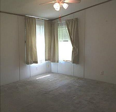 Located in a 55+ *no pets community, this spacious 3 bedroom 2 bathroom double wide mobile home boasts a 2 car attached garage with entrance carport, and is situated on a dead end street. Enjoy the wooded front view, and a nice back yard. This home has been meticulously maintained and offers appliances and heating and air units. Relax in the garden tub in the master bath. You will appreciate the large walk in closet in the master bedroom as well. This home offers 2 additional bedrooms and a large kitchen that opens into a large living room. Enjoy the decorative electric fireplace while you relax in this spacious home. Schedule a showing today, you won't want to miss this beauty! Monthly lot rent includes trash service and an allowance toward public water service. *Service Animals permitted and do not fall under no pets policy.