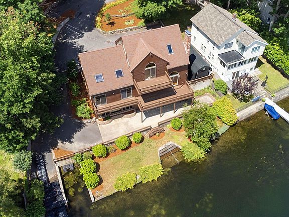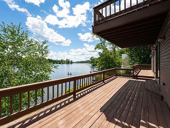 This magnificent waterfront home on Cobbetts Pond checks all of the boxes if you desire the lake life! Located on the end of a dead end road just minutes off the interstate this home offers approximately 110 feet of direct lake frontage. Enjoy the convenience of your own boat launch and an oversized garage to store 4+ vehicles and your water toys. This contemporary home has three levels of decks and patios to enjoy views of the water! Steps from the patio down to the lawn lead to concrete stairs into the water. Inside cathedral ceilings & wood floors makeup the open floor plan with plenty of room for entertaining, especially in the custom bar & pool room in the lower level that walks out to the patio. The primary bedroom suite offers a balcony, lots of natural light and a master bath with soaking tub. This home is ready for a new owner today!