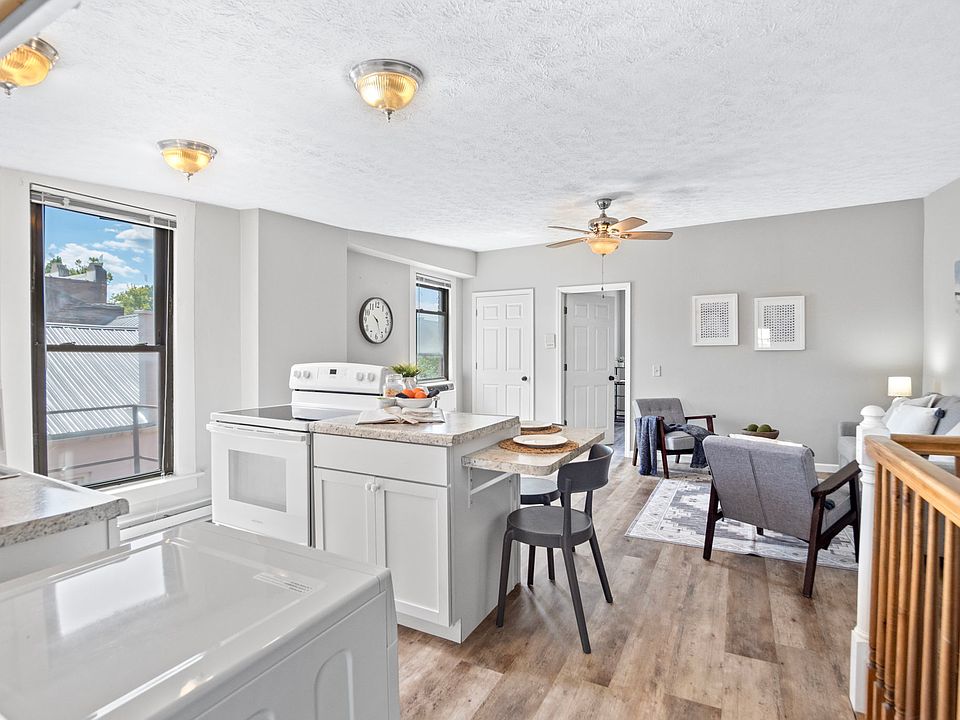 This 1-bedroom, 1-bath apartment offers an open floor plan and modern features in a prime downtown location. The kitchen includes a convenient center island, perfect for dining or entertaining, and flows seamlessly into the living space. The bedroom features a spacious walk-in closet, while two private entrances and a private deck provide comfort and convenience. Enjoy the charm of downtown Chillicothe with shops, restaurants, and entertainment just steps away.
