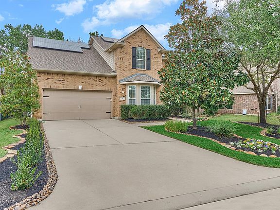 Village Builders home located in Creekside Park and a short walk to Tupelo Park featuring pond, playground, tennis courts, pavilion, open fields, and walking trails. Zoned to highly desired Creekside Park Elementary, Creekside Park JH and Tomball HS. This 4-bedroom, 2.5-bath home features a large home office, spacious gameroom upstairs, wood and tile flooring throughout—NO CARPET. The kitchen opens to the main living areas with vaulted ceiling and gas fireplace. Enjoy the oversized sunroom with AC/Heat, ceiling fans and TV mount that provides flexible additional living space. NEW roof 3/2025 and NEW water heater 9/2025, plus paid-off SOLAR PANELS for energy efficiency and an EV CHARGER in the garage. INCLUDES LG kitchen refrigerator, LG washer, dryer, 75in LG TV mounted in family room + extra GE refrigerator in garage.