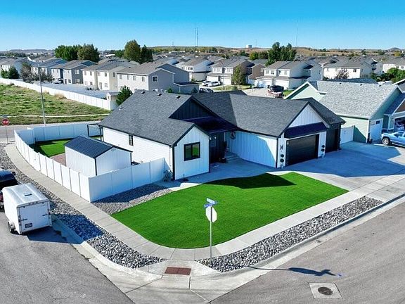 Exceptional home and features!!! From the built in shelving to all the additional concrete areas this home exudes quality and premium finishes. The fun black and white color theme runs throughout. Offering main level living, open concept living room and kitchen with an island. The primary bedroom is good sized with a large walk in closet. The basement has a very roomy bedroom with large closet and then a huge family room with an exceptional wet bar area. Call Ryan Conklin, RE/MAX Professionals, 307-660-8144