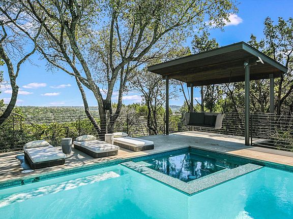 Immerse yourself in nature within this private Westlake sanctuary in one of the most coveted neighborhoods in Austin. This stunning custom built modern estate in original guard gated Rob Roy is filled with light from floor to ceiling steel windows, polished floors, & beautifully beamed cathedral ceilings. The gourmet kitchen has high end custom cabinetry with quartz counters, gourmet appliances & a view into the backyard oasis. The kitchen, dining & living area are all open and flow into each other for seamless entertaining. The dining and living areas feature large stone fireplaces and designer lighting for great ambiance. The luxurious primary suite has a generously sized walk in closet, refreshment area, & spa like bath with oversized walk in shower and pedestal tub. Also on the main level there is a home planning center, large media room, study/bedroom & wine wall.