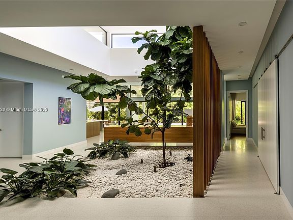 Located in the private Bay Heights community of Coconut Grove steps from Vizcaya, Alice Wainwright Park, and minutes to downtown Miami & South Beach this AIA Award home featured in House and Garden as a master class of indoor-outdoor living evokes mid-century modernism across its sprawling 4,512 square foot open floor plan. Featuring a custom open kitchen with appliances by Sub-Zero & Wolf and a sun soaked indoor atrium. Elegant terrazzo flooring throughout leads to entertaining spaces and a large, covered pool patio. The 4 bedroom ensuites provide luxurious tile and fixtures and the master opens directly to the pool. Additional amenities include a media room, 2-car garage with electric vehicle charging, generator, pool and spa. Bay Heights Community provides 24/7 police patrol security.