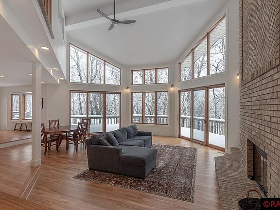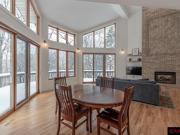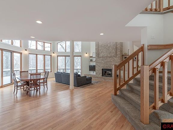 Welcome to this one-of-a-kind home located on a quaint cul-de-sac in Upper North Mankato nestled amongst the trees on a ravine lot. This updated 2-story provides ideal spaces for relaxed everyday living and entertaining. The welcoming foyer opens into the Great Room with 18’ vaulted ceiling complimented by a wall of windows with stunning views that draw you in the minute you enter! Additional features include beautiful hardwood flooring, access to a wrap-around deck, and floor-to-ceiling 2-sided gas fireplace shared with the adjacent recreation room which also provides access to the deck. Open to the Great Room is the kitchen with granite countertops, tile backsplash, stainless steel appliances, unique copper sink, pantry, breakfast bar seating, and informal dining area. Completing the main floor is the laundry room, powder room, and full bathroom. A wide staircase leads you to the upper-level catwalk overlooking the Great Room below. Upstairs provides a massive master suite boasting a walk-in closet and updated ¾ bathroom with custom dual-sink vanity, tile flooring, and spacious walk-in tiled shower. You will also find 2 additional bedrooms, one which offers private access to the full bathroom. The lower level provides a large family room with wood-burning fireplace, daylight windows, and LVT flooring. Also on this level is the 4th bedroom, ¾ bathroom, and great storage space. But it doesn’t stop there… down some stairs you’ll find the bonus room currently being used as a basketball court. This flex space could easily be a home gym, studio space, playroom, or converted to a theater room. MUST SEE – schedule your showing today!