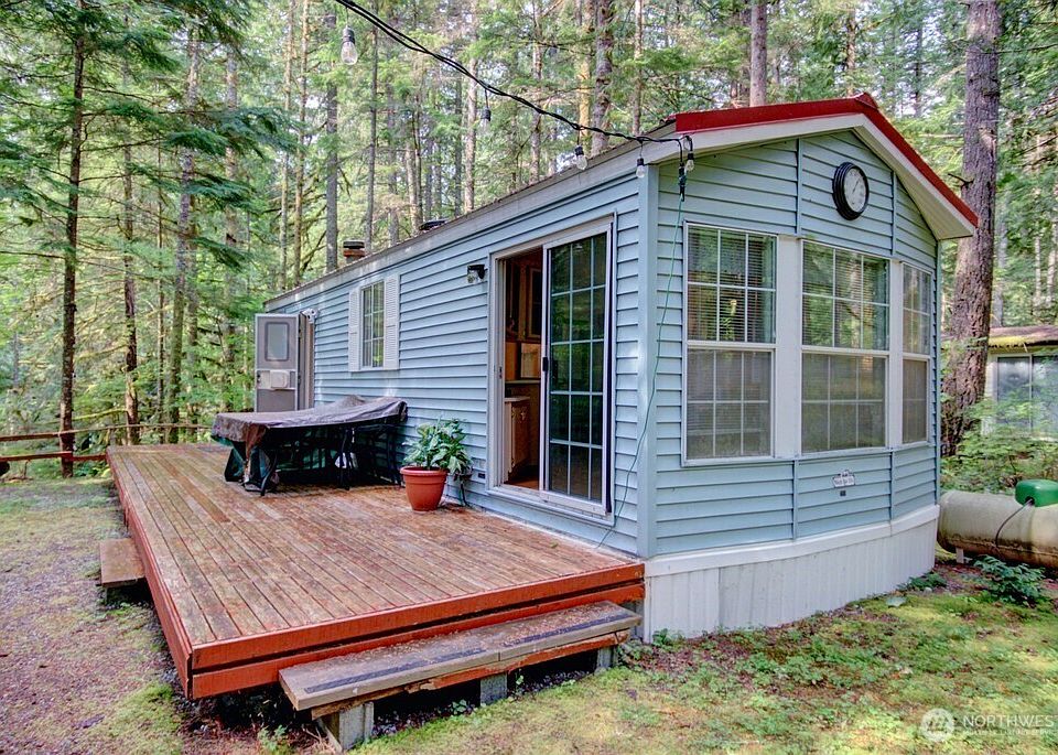 Great starter lot adjacent to Schinn Canyon greenspace. Super rare two bedroom 1991 park model with a metal roof, with an uncovered deck, and just around the corner to trail to the Nooksack River. Lot features a shed and gazebo that both can be turned into amazing bonus spaces or just use the space for plenty of extra storage. Close to playground, but not to close. The Glen is zoned recreational for 120 days of use out of the year and has all the amenities you could want, including 2 pools, hot tub, pickleball courts, library, laundry mat, 2 clubhouse, 24 hr security, gated entry, & play areas.