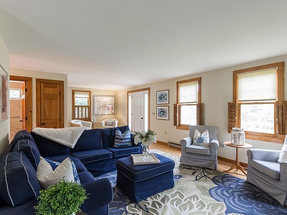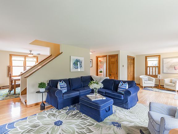 EDGARTOWN ESTATES- Wonderful three-bedroom Katama property ready for enjoyment this season! Pristine and immaculate, this home has been meticulously maintained and updated over the years, with renovated kitchen and bathrooms as well as central air conditioning. From this ideal location, Edgartown Village and South Beach are only a pedal, stride, or ride away! The casual layout offers plenty of room to relax and gather, while the landscaped yard and sunny back deck extend your living space to be enjoyed both day and night. An amazing opportunity! First Floor A warm and welcoming front entry leads you to a small reading alcove and living room, complete with a propane fireplace. A fully equipped kitchen, with a breakfast bar, overlooks the dining area and provides easy access to the back deck, perfect for summer barbeques and catching the afternoon sunshine. A separate den, easily accessed off the main living space, and full bathroom, are also found on the first floor. Second Floor Three large bedrooms, office/den, and full bathroom.