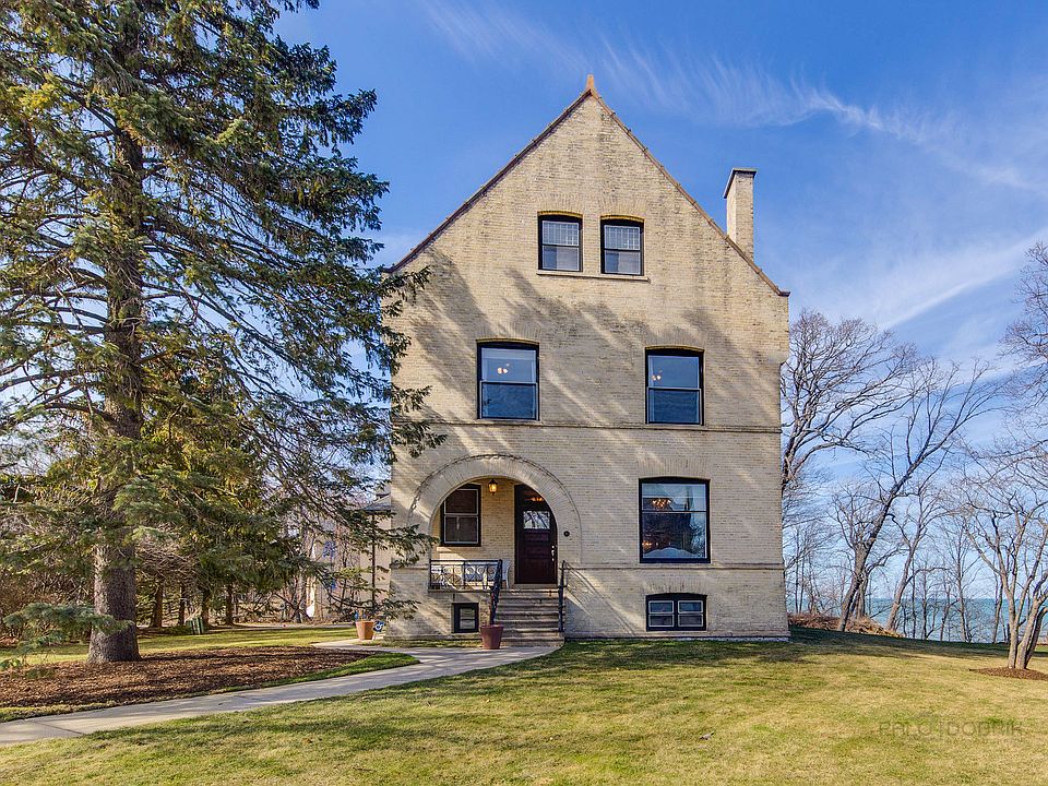 Expanded, remodeled and recently updated Fort Sheridan Captains Mansion directly on Lake Michigan. Every single room in this house has unobstructed views of Lake Michigan!! High end millwork and finishes with period details throughout, solid oak doors and beautiful original hardware, high ceilings on every floor and 4 fireplaces! Fabulous house to entertain with generous room sizes and wonderful flow yet perfect for everyday living with amazing kitchen overlooking the lake and adjacent family room with panoramic views as well! Second floor showcases Primary bedroom suite with separate sitting area, expansive bath and cozy fireplace. Wake up every morning to the sun rising over Lake Michigan! Two additional bedrooms and full bath complete the second floor. Additional 3 bedrooms plus 2 full baths on third floor as well. Lower level finished to include a rec area, bedroom and full bath plus a theatre! This ideal neighborhood is truly a hidden paradise! Steps to miles and miles of walking trails, beach and quaint town of Highwood featuring award winning restaurants, boutiques and cafes. Captivating in every way!!