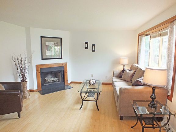 Gorgeous Scotty Hollow end unit beautifully updated and ready for you to move right in. Kitchen with newer cabinets, granite, and black appliances; beautiful wood floors in living and dining rooms, corner fireplace, 1st floor laundry w/updated half bath just off the kitchen and a private deck through the slider in the dining room. Spacious master bedroom with cathedral ceilings, skylight (letting in lots of natural light) and a multi-purpose loft which could be used as an office, exercise room, or den. Second bedroom with two double closets and an updated full bath complete this prize unit, plus a bonus area in the lower level where you can set up a home office with great natural lighting from a 2nd slider leading to a patio area. This popular complex has a swimming pool, tennis courts, basketball court, clubhouse, beautiful garden areas and walking trails, all with a convenient commuter location next to Rt. 3.