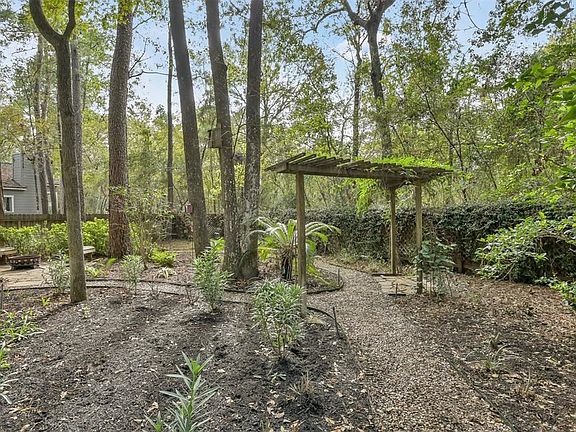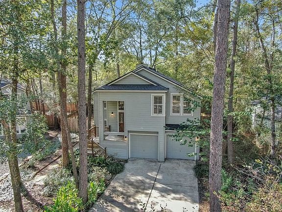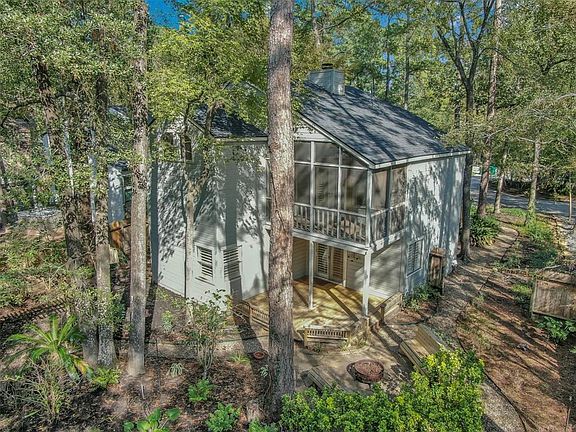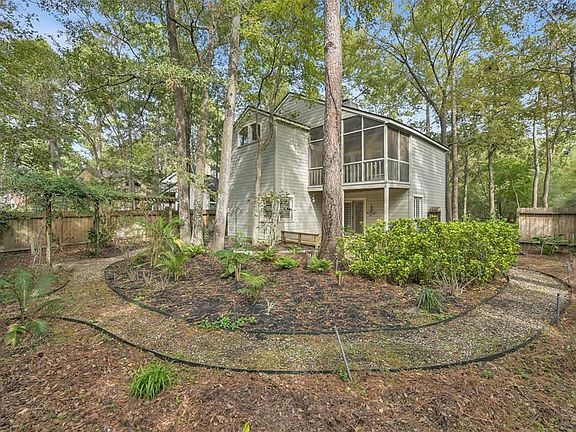 Have you ever dreamed of living in a tree house nestled in a canopy of trees? Welcome to "The Treehouse on Shallow Pond," on a quiet culdesac in The Woodlands. The home has professional landscaping w/loads of curb appeal. The main living area on the second floor has ample natural lighting, custom plantation shutters, and a newly remodeled kitchen with cabinetry that soars to the ceiling and opens to breakfast room. The screened sunroom is off the living area and is perfect to enjoy the backyard. The primary suite has access to the sunroom for that treehouse feeling. Downstairs are secondary bedrooms and a bathroom, a large living area, and a covered patio leading to the park-inspired backyard with a meandering walkway, beautiful flowers, an arbor, a fire pit, additional seating, and the neighborhood walking trail behind the fence. Enjoy everything the Woodlands offers.**Photos Digitally Staged