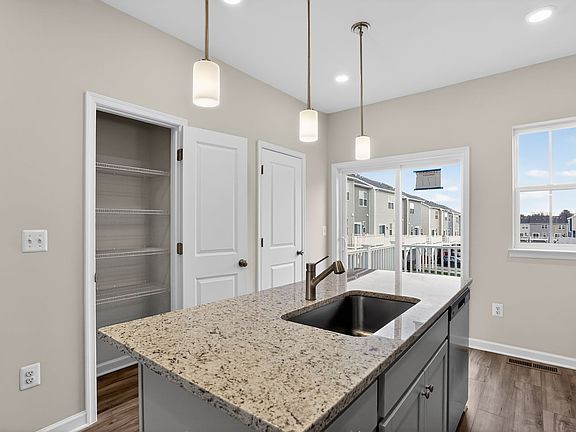 The main level is bright and open, with the kitchen overlooking the dining and living areas perfect for everyday living and entertaining. The kitchen is appointed with upgraded cabinetry, granite countertops, tile backsplash, stainless steel appliances, pendant lighting, and luxury vinyl plank flooring throughout. A convenient half bath is also located on this level. Just off the main living space, enjoy a private deck ideal for relaxing, grilling, or hosting friends.