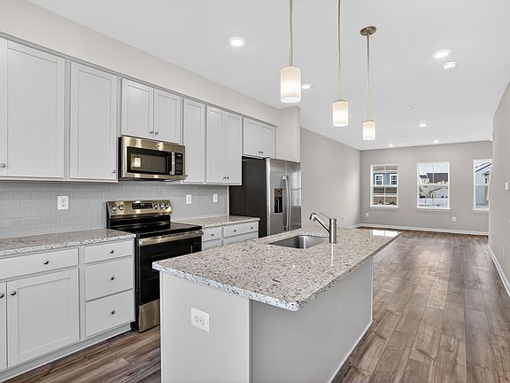 Three fully finished levelsUpgraded cabinetryTile backsplashRear-entry garageGranite countertopsStainless steel appliancesPendant lighting