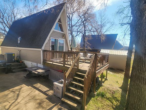This cute-as-a-button tastefully updated 2 bedroom 1 full bath Table Rock Lake A-Frame cabin is ready for summer fun! Conveniently located within walking (or golf carting) distance to the shoreline and community boat launch so bring your kayaks, paddleboards, Jet Skis, or boat! Get ready to enjoy the peak-a-boo lakeview and relax under the trees while the hummingbirds come by to visit on the large deck . There is also ample space on the patio for grilling, storage, or more space to hang out. The cabin is turnkey so just bring your toothbrush and swimsuit. Fresh light interior colors and appealing wood grooved ceilings help give this cabin character while the wood-look vinyl plank flooring make it super quick & easy to clean. For year around comfort inside, the HVAC is new! Lets talk about location... catch an awesome concert at Black Oak Amphitheater just 1 mile up the road. Baxter Marina is conveniently just 4 miles down the road where you can lease a boat slip, rent a pontoon, store your boat, pick up snacks, drinks, fishing tackle, & other essentials at the convenience store, or grab dinner & drinks with live music at Ride the Wave restaurant. 15 minutes to grocery, medical, shopping, and more fantastic restaurants. Also only 15 minutes away and breathtakingly beautiful - Dogwood Canyon. An easy 30 minute drive for your roller coaster fix at Silver Dollar City and everything Branson has to offer! This property is short term rental approved so you have options - full time living, vacation getaway, or an income producing investment nightly rental!