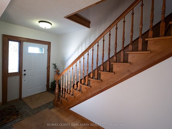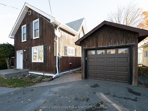 Welcome to this beautifully updated 2-storey home in the heart of Quinte West! This spacious property offers 4+1 bedrooms and two 3-piece bathrooms-perfect for growing families. The bright, open-concept layout features hardwood floors throughout the main living areas and a generous living room that flows seamlessly into the dining area and the newly renovated kitchen, complete with modern finishes and plenty of workspace. A solid cherry staircase leads to three spacious bedrooms, including a primary with built-in shelving for added storage and style. The fourth smaller upstairs bedroom is well suited for a nursery or office. The main floor includes a fifth bedroom, laundry for everyday convenience while the bonus room provides extra space for relaxing or hosting guests. The updated bathrooms and freshly painted interior give the home a crisp, move-in-ready feel. Outside, enjoy a private lot with a circular driveway offering parking for up to six vehicles and a detached one-car garage. Centrally located and full of charm, this home blends comfort, functionality, and room to grow-all within minutes of local amenities, schools, churches, and parks.