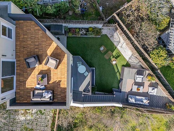 Big Home Big Views - The Ultimate Retreat Welcome to 23 Sparta Street, a modern marvel in Visitacion Valley built in 2017. Designed across three levels, this home is ideal for multi-generational living or those seeking a versatile compound with privacy & shared spaces. An expansive great room greets you with walnut-stained oak floors, soaring ceilings & stunning Bay views framed by lush hillsides. The middle level is the heart of the home, seamlessly blending relaxed living with elegant entertaining. The top level offers three spacious bedrooms & two full baths, including an ensuite with direct access to a 387 sqft deck with acacia wood tiles, perfect for enjoying the fresh air & serene surroundings. The lower level features a luxurious primary ensuite with direct access to the private deck & backyard, a flex den/bonus room & an additional full bath, perfect for a guest suite, in-law unit, or private quarters. The gourmet kitchen boasts custom cabinetry, a refined island & a premium high-end Thermador 6-burner gas cooktop, flowing effortlessly into a refined dining area. Multiple terraces provide a tranquil outdoor retreat. Minutes from McLaren Park, Louis Sutter pickleball courts & Mission Blue Cafe, this home blends modern sophistication, functionality & a vibrant community.
