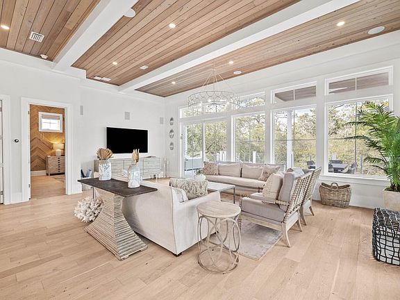Located in the highly desirable Dune Allen community along Scenic Highway 30A, this fully furnished coastal retreat offers a rare combination of upscale design, flexibility, and strong short-term rental potential - with no HOA restrictions. Whether you're looking for a luxury getaway or a high-performing income property, this one checks all the boxes. Set on a private, tree-lined lot, the home features 12-foot ceilings, floor-to-ceiling windows, and a light-filled open layout built for hosting and relaxing. The gourmet kitchen impresses with sleek white waterfall-edge countertops, a 48' dual-fuel range, top-tier built-in appliances, and an oversized island with seating for six. A dedicated home office just off the kitchen is perfect for remote work or quiet retreat.Designed with comfort and privacy in mind, the home includes two king primary suites - one on the second floor and one on the third - plus two additional king bedrooms and a custom bunk room, each with its own private bath. The third floor also features a flex space, perfect for a media or game room. Three owner's closets provide ample secure storage for personal items.