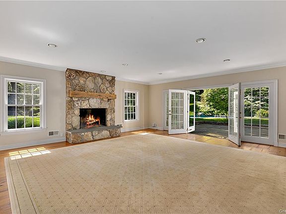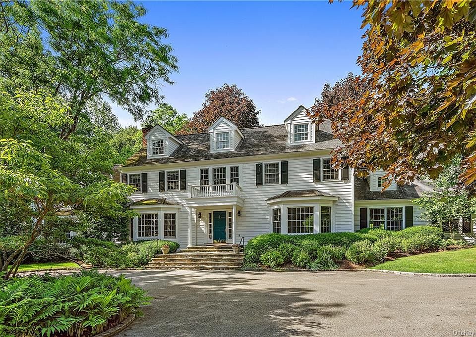 SPRINGHURST - Stately, classic, country colonial meticulously appointed. Entry Foyer with limestone floor. Beautifully proportioned Living Room with Fireplace. Sunroom, 22 x23 , with stone fireplace and antique wide heart pine wood floor and Wet Bar. Formal Dining Room. Mahogany Library. Cherry Rutt Kitchen open to Breakfast Room and Family Room with Fireplace. Master Suite. Guest Suite. Four additional Bedrooms. Four acres of level property in top estate area. Long circular driveway to private setting with towering evergreens, lush lawns and flowering gardens. Mature landscaping and free form pool.