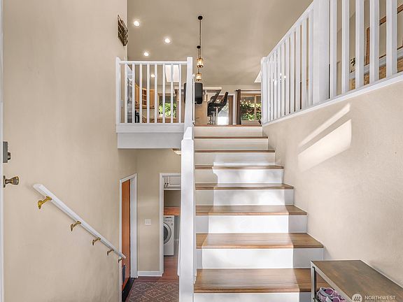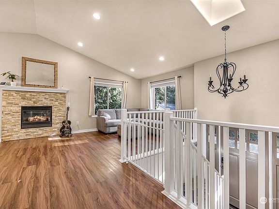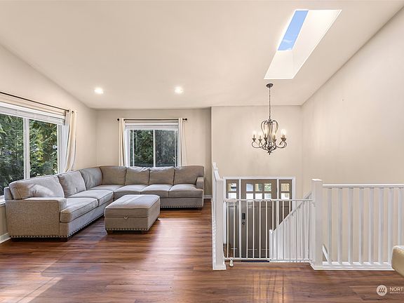 Nestled on a serene lane & backing to a protected greenbelt, this wonderfully well-kept home is a haven of tranquility. Natural light floods the space, thanks to an open floorplan, skylights, & vaulted ceilings. Spacious chef’s kitchen, complete w/ large island & bar. Huge covered private back deck offers a lush hillside view, ideal for gatherings & everyday living. 3 bedrooms upstairs w/ new LVP flooring & doors, including spacious primary suite w/ walk-in closet & double vanity. Versatile downstairs w/ full bath - perfect as 4th bedroom, guest suite, rec room, home office. Generous 2 car garage w/ workspace & walk-thru storage area. Sudden Valley amenities include parks & playgrounds, trails, golf course, community beaches, gym & more.