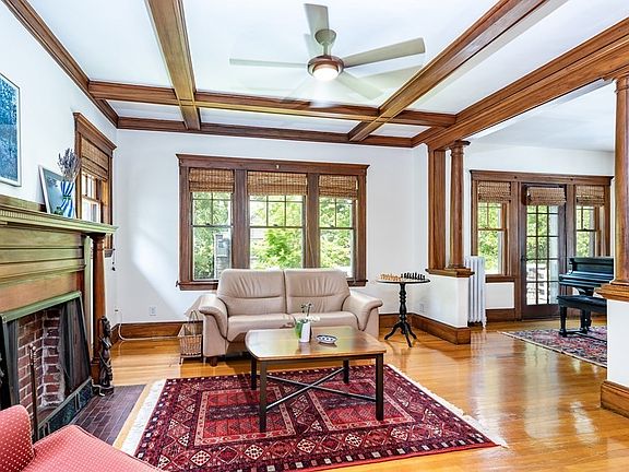 EXACTLY where you want to live - one of the prettiest streets in Coolidge Corner! This charming, light filled home features distinctive rooms that flow seamlessly to one another, lending the space an open and gracious feel. Beautiful woodwork at every glance includes a magnificent coffered ceiling in the living room, abundant library bookcases + a beautiful china cabinet in the dining room that abuts the spacious kitchen. Two bedrooms and 2 bathrooms complete the main level. Upstairs are 3 additional bedrooms (perfect for a home office or two!) + another full bath. Meticulously cared for: newer roof, new wiring, full insulation, full interior paint and just completed exterior paint (including carpentry). Much sought after garage parking! Potential for main floor laundry. Outdoor areas include the deck at the front and screened porch at the rear of the unit and common yard space. Just blocks to all shops, restaurants, cinema + T in Coolidge Corner. Close to Medical Centre + BU.
