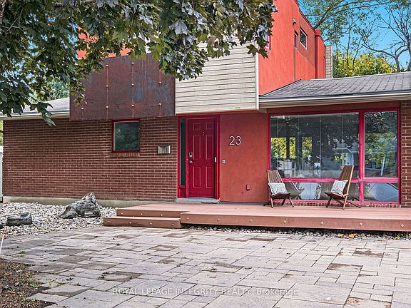 This isn't your average home! It's a bold, vibrant, and one-of-a-kind space that brings fresh energy and modern style to Crystal Beach! Thoughtfully designed and full of personality, this home blends sleek contemporary design with standout custom features you wont find anywhere else in the neighbourhood.From the eye-catching structural steel accents to the floor-to-ceiling windows, glass railings, and show-stopping living room fireplace, every inch makes an impression. A large composite deck sets the tone as you arrive, leading into a spacious entryway with a barn door and a custom closet system.The kitchen is a modern showpiece with quartz countertops, sleek glass and metal cabinetry, panelled dishwasher for a seamless look, S/S appliances, a custom lazy Susan corner cabinet, built-in desk nook, and a breakfast bar perfect for casual mornings or entertaining friends.The open concept living and dining area is bathed in natural light and opens up to two main floor bedrooms. One makes an ideal home office, with a built-in wardrobe and filing storage, while the other features a large window and desk. The main floor bath features classic mosaic tile and a spacious shower. Upstairs? That's your personal retreat. The entire 2nd level is dedicated to a stunning 420 sq ft primary suite that feels like a luxury spa getaway. Enjoy panoramic views from oversized windows, and unwind in the ensuite featuring a slate steam shower, deep soaker tub, dual vanities, and custom built-in wardrobes. Total relaxation.The finished lower level offers even more: a large recreation room with a cozy corner fireplace, a bonus room ideal for a den, office or craft room, a finished laundry room with folding station, and a convenient two-piece bath.Outside, the backyard offers space to relax or entertain, with a private patio and mature trees. All of this in Crystal Beach, a quiet, scenic west-end neighbourhood steps from the Ottawa River, top-rated schools, trails, parks, DND, Hwy 417 and more!