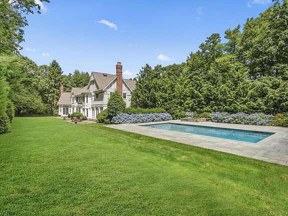 Beautiful custom built English Country Estate home with a gorgeous pool nestled on a lushly landscaped 1.4 acre lot in one of Weston’s most coveted Southside neighborhoods. Designed by a premier architect, this stucco and stone residence offers 8000sf+ of chic interiors, a fireplaced Great Room with vaulted ceiling, open to a gourmet kitchen, an elegant dining room with butler's pantry, and first floor and second floor home offices. French doors lead to bluestone terraces, and a heated gunite pool and spa. Tall evergreen trees encircle this secluded backyard sanctuary. The second floor features a luxurious primary suite with elevated tray ceiling and dual walk in closets, 4+ bedrooms, and 5 full bathrooms. A full-height attic and 6 BR septic offer expansion potential. The finished lower level has a game room, bonus flex space, and a full bathroom. This is an exceptional opportunity in a prime Weston location with fast access to commuting routes and top ranked schools.