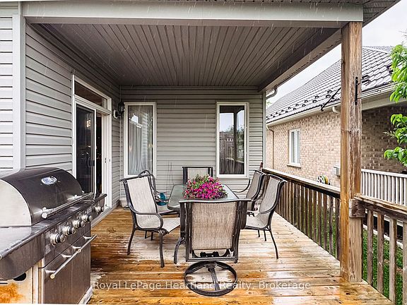 Welcome to The Bridges of Seaforth Luxury Living on the Golf Course. Presenting this stunning St. Lawrence Model, a beautifully customized 2+2 bedroom, 3-bathroom home offering over 3200 sqft of finished living space nestled beside the Seaforth Golf and Country Club. From the moment you step inside, you'll be drawn to the bright, airy open-concept design, perfectly suited for both everyday living and elegant entertaining. A cozy two-sided gas fireplace enhances both the spacious living room and the formal dining area, creating a warm, welcoming atmosphere. The oversized kitchen features an island for meal prep and casual dining with ample cabinetry. Just off the kitchen, a sunroom provides a quiet place to start your day or relax in the afternoon, with patio doors leading to a private back deck where you can enjoy the quiet and peaceful surroundings. The primary bedroom offers a private retreat with a luxurious ensuite boasting a soaker tub and tiled shower. An additional den/bedroom on the main floor is ideal for guests or a home office. Downstairs, the fully finished lower level offers plenty of space for hosting family and friends, with two additional bedrooms, a full bathroom, and generous storage. There is also a dedicated wine-making room with a sink. Additional features include a double car garage and access to the Bridges of Seaforth's exclusive 18,000 sq. ft. recreation centre. Enjoy a full suite of amenities including an indoor pool, tennis courts, fitness room, card and craft rooms, a workshop, and a social lounge. This well-maintained home offers the best of lifestyle and location where comfort, community, and natural beauty come together seamlessly. The monthly fee for the Rec Centre is $172.00 per month.