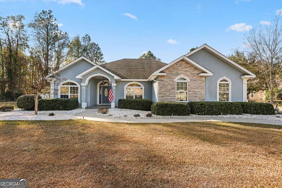 MOVE-IN READY! Immaculate and updated, this 4-bedroom, 3-full-bath home is beautifully situated at the end of a quiet cul-de-sac on a spacious .77-acre lot in The Lakes. It truly checks all the boxes for privacy, comfort, and convenience. The fully fenced backyard is a retreat of its own - complete with fruit trees, a large storage shed, a screened patio, and a gas grill hard connected to the private propane tank, perfect for outdoor dining and entertaining. There is even plenty of space for a pool! Inside, tasteful upgrades include quartz countertops and stainless steel appliances in the kitchen, quartz vanities and tiled showers in the bathrooms, arched doorways with rounded corners and elegant crown molding. The open-concept living area is filled with natural light, and the gas fireplace adds warmth and ambiance on cool evenings. The generous owner's suite features an en suite bath with jetted soaking tub, separate tiled shower and a walk-in closet. All guest bedrooms have a walk-in closet, one with private en suite bath and the other two share a jack n jill bath. The full size laundry room has ample cabinet/shelving space and storage closet, leading to the two car garage with upgraded shark coating floors, utility sink and shelving system already in place. With a total of 4 bedrooms and 3 full baths, this layout offers flexible space for guests, a home office or multi-purpose use. Located in a peaceful community with easy access to I-95, FLETC, downtown Brunswick and the beaches of Jekyll Island and St. Simons Island - this home blends comfort, convenience, and coastal lifestyle.