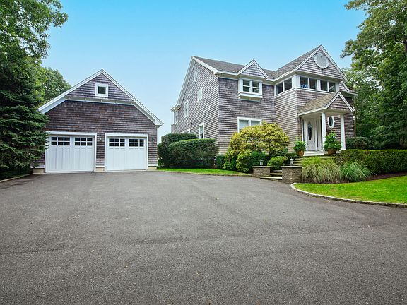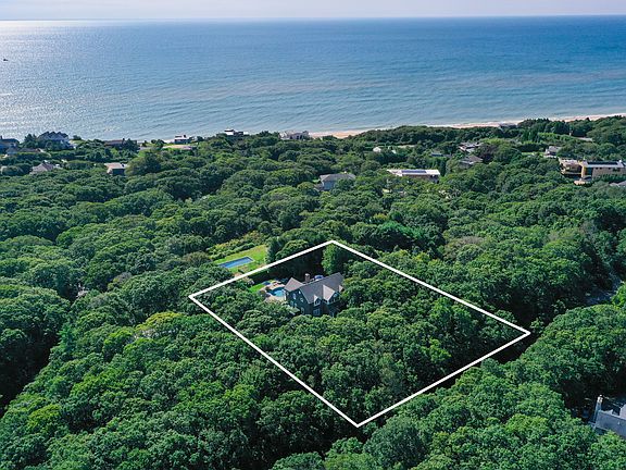 Tucked away on a quiet cul-de-sac in Montauk's coveted Hither Woods, just half a mile from ocean access, this exceptional traditional-style residence blends timeless craftsmanship with modern coastal luxury. Spanning approximately 4,450 sq. ft. and thoughtfully maintained since its 2005 build, the home offers 5 bedrooms, 5 full baths, and 1 half bath-all designed with comfort and style in mind. Soaring ocean views set the tone for the light-filled interiors. The open chef's kitchen features premium stainless steel appliances, a propane Viking stove, and wine fridge, while the adjacent living room-complete with a fireplace-invites effortless relaxation amid sea breezes. The primary suite is a private retreat with two walk-in closets, a spa-like bath, and sliding doors that open to a deck overlooking the grounds and ocean beyond. The versatile layout includes a first-floor den with fireplace that flows directly to the pool area, two ensuite guest rooms, and additional bedrooms with a shared bath. On the lower level, a spacious recreation room, wine room, and abundant storage extend the home's possibilities. Outdoors, resort-style living awaits: a freeform gunite pool, outdoor shower, and manicured landscaping accented by stonework create a serene setting for entertaining or quiet escape. A detached two-car garage, central heating and cooling, hardwood floors, built-in audio, generator, water filtration system, and central vacuum provide both convenience and peace of mind. Set on nearly an acre of meticulously landscaped grounds, this Montauk gem offers the rare combination of privacy, elegance, and proximity to the ocean-perfect for those seeking the ultimate coastal retreat.
