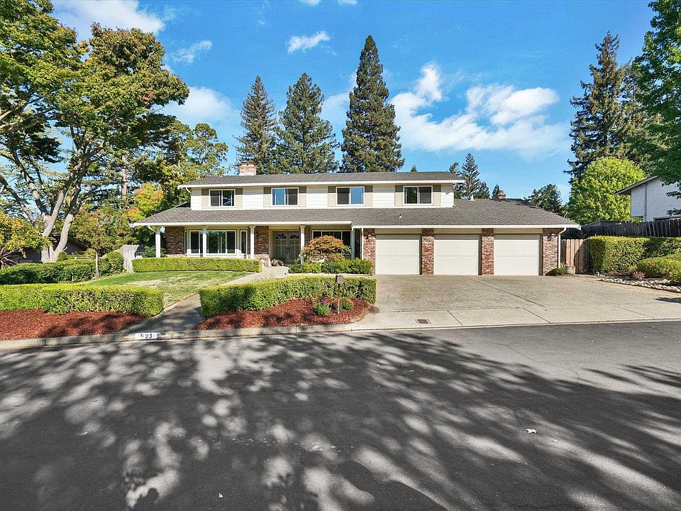 Spectacular opportunity in prestigious Roundhill Country Club. Ridge views. Discover the potential of this impressive 2-story home set on a generous .36-acre lot with an expansive side yard. Offering 5 bedrooms, 3 bathrooms, and 3,271 sq. ft. of versatile living space, this residence combines immediate comfort with exciting rooms to personalize. The flexible floor plan features two primary suites: one conveniently located downstairs with an attached updated bath, and an upstairs primary retreat with a walk-in closet, stall shower, standard tub, double sinks, and a separate vanity. Three fireplaces add warmth and charm throughout the primary bedroom, living room, and family room. Additional highlights include a spacious upstairs laundry room, a 3-car garage, and a pool awaiting your updates. With thoughtful updates already in place and tremendous opportunity to add your own vision, this home offers solid bones, an excellent layout, and a premium location. A rare chance to create your dream home in one of Alamo’s most sought-after neighborhoods.