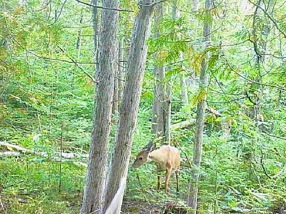 Hunters paradise! Hardwood and cedar trees on this 44 acre plot of land give this triangular parcel a perfect spot to hunt. Recent trail camera shots, show deer, and turkey roaming throughout.
