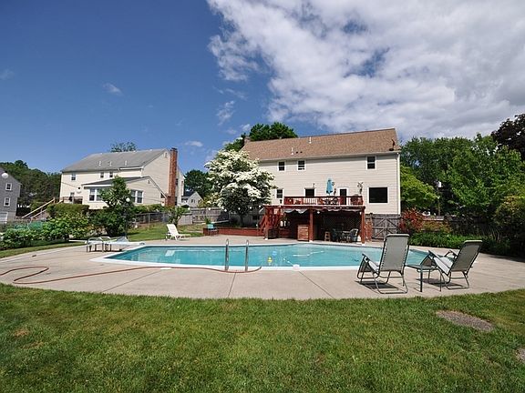 Great Opportunity! Northside 5 Bedroom Garrison Colonial. Eat-in kitchen w/great cabinet space, Corian & granite counters, SS appliances is open to dining room, Hardwood flooring throughout all 9 rooms! First level has front-to-back living room w/fireplace and a front-to-back family room both with picture windows overlooking the rear yard. 1st floor bath has shower & laundry. Second level has 5 generous sized bedrooms w/main bedroom w/tiled bath w/whirlpool tub/shower. Hall bath has tiled tub/shower with double sink and white vanity. Enormous walk-up attic for storage or possible expansion. Finished basement approx. 596 sq. ft. with closet space & wine rack makes a great bonus space! Rear yard is a fantastic area for family gatherings/parties with a deck (set up with natural gas grill & smoker) that overlooks the heated inground pool with food prep area/bar/sitting area. New roof 2015, Water heater 2016, Newer A/C systems x 2. Marvin insulated windows Close to shopping & major routes.