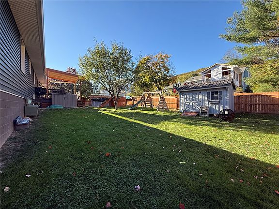 Discover the charm of this inviting split-level home, perfectly situated in a convenient location. The interior and exterior boast a host of stylish updates, enhancing its appeal. Featuring four spacious bedrooms and two full bathrooms, the main living area showcases a modern kitchen equipped with appliances and a beautiful island, making it an ideal space for cooking and socializing. Adjacent to the kitchen is a cozy dining area and a generous living room, perfect for gatherings and relaxation—three comfortable bedrooms and a beautifully updated bathroom and half bath complete this level. Venturing to the lower level, you'll find a large family room that offers a great space for entertainment or unwinding. Additionally, an extra bedroom that can easily serve as a home office or den, adapting to your lifestyle needs. This level also includes a practical full bath/laundry room for convenience, along with the bonus of an attached two-stall garage. Step outside to your private oasis, where a fully fenced backyard awaits. Enjoy sunny days on the expansive back deck, complete with a newer pergola that adds a touch of elegance. The backyard also features an above-ground pool, perfect for summer fun, along with a swingset, a patio area, and a detached shed for extra storage. This home truly combines comfort, style, and functionality for the ultimate living experience.